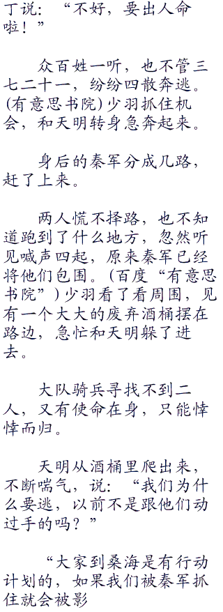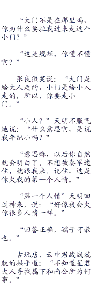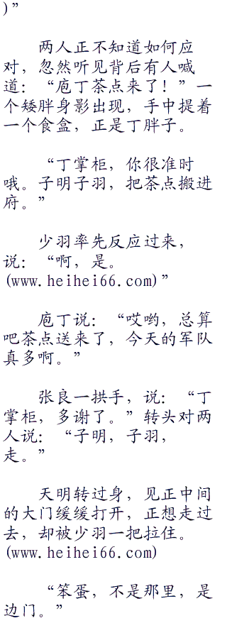 少羽咬牙切齿的给天明买了一只鸡腿,二人正想回去找庖丁,突然背后一阵呼喊传来,一大队黑衣黑甲的秦国骑兵扈从着一百多辆马车穿街而过。