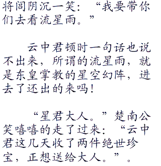 “嘿嘿,原来你们都还惦记着我呀,”公输仇阴笑着看看周围,问:“那个如花似玉的小姑娘呢,怎么没看见她呀?”