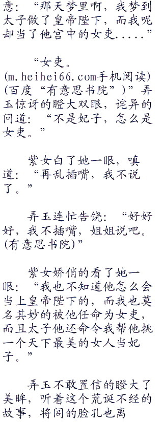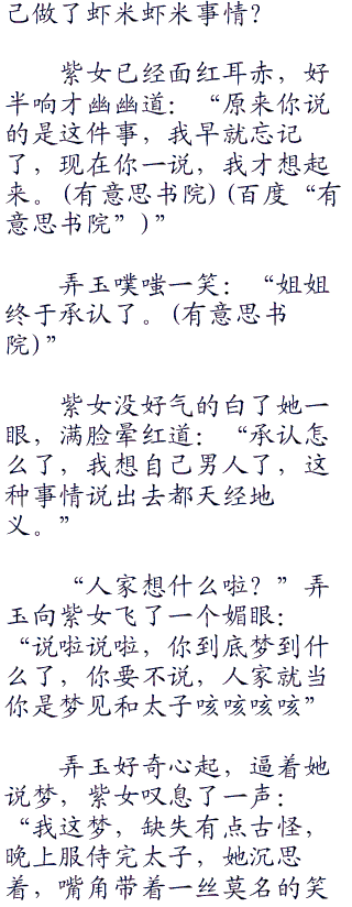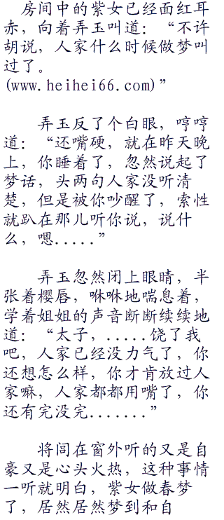 弄玉白了她一眼:“我傻吗,只不过一到晚听你睡梦中叫太子的名字,我还有点担心呢!”