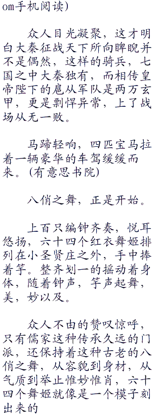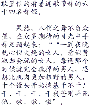 正所谓外行看热闹,普通的氏族黎民,只是看着六十四个俊俏的舞姬啧啧称羡,而熟知儒家礼节的贵族却目光有点凝重。