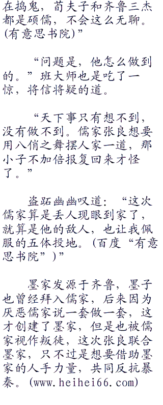端木蓉早就笑瘫了,虽然早知道这个坏蛋要搞事,却没想到玩了这么一处,你让儒家情可以堪。