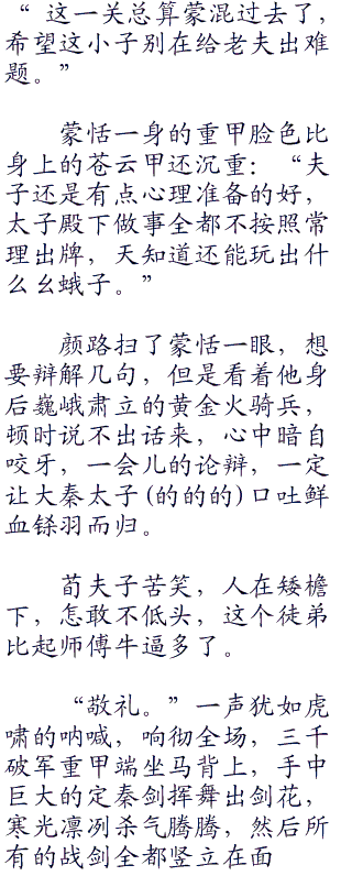 盗跖双眼放光:“这是八俏之舞,儒家真是人才济济,想法一流,没想到大秦太子拜入儒家的礼节竟然如此的豪放,整个是舞林大会。”