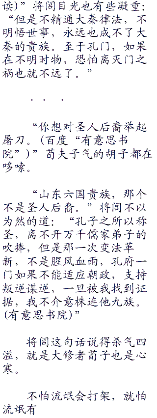 这次的灾难一点也不逊色于上次几千名暴徒冲击小圣贤庄打砸抢给儒家带来的危机。甚至犹有过之,从此以后儒家在诸子百家中恐怕再也抬不起头来。