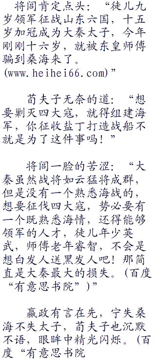 将闾摸着鼻子坏笑:“徒儿要是没有三分能耐,父王敢让一个十六岁的太子总领天下民政,敢让我主持桑海政局。”