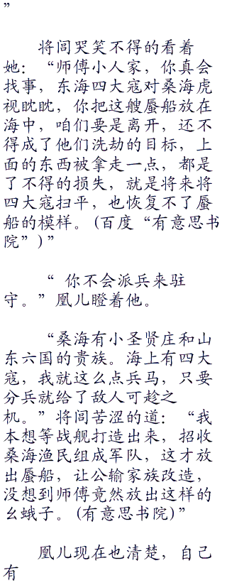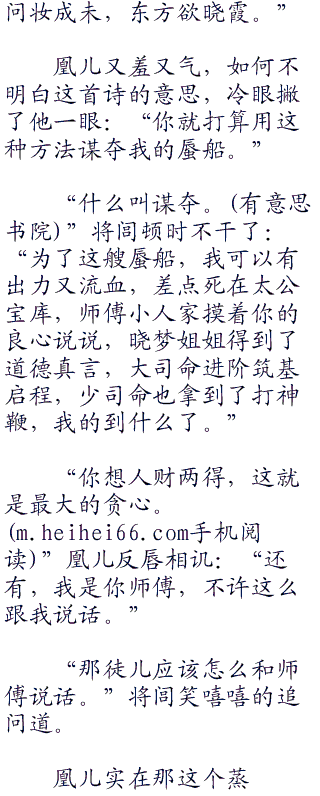 凰儿鄙夷的一笑:“这算什么玩意儿,连点灵气都没有,徒儿你不乖哦,竟然拿这破玩意儿糊弄我。”