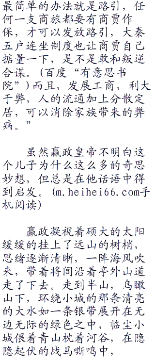 “驰道。”将闾毫不犹豫:“不管是和匈奴打仗还是阻断羌胡,拿下百越,都是军马未动粮草先行,而且,修建驰道之后商人的来往更加便利,东西南北互通有无,而大秦的税收也就随之增长,而将燕赵秦几国的长城链接起来也就有了足够的资金支撑。而最大的好处就是。”将闾站起身来,指着百越道:“如果穷苦贫瘠的地方,有能力在富裕的地方购买田产,还会留在这里吗!”