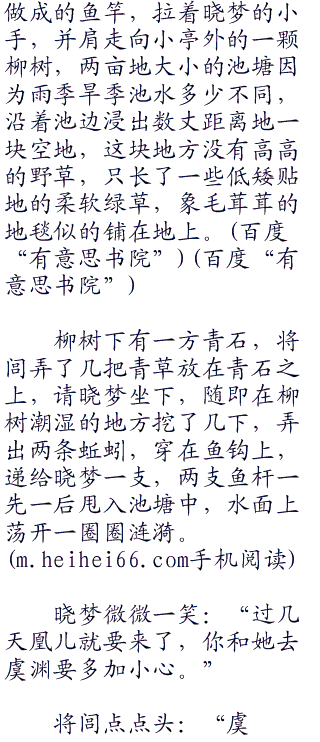 晓梦美眸扫了一眼,池塘边居然有一个极大的亭子,虽然老旧,装饰的也很粗鄙,但是和这池塘,草地,柳树,蓝天却有一种融为一体的感觉,仿佛这个亭子恒古就留在这儿。