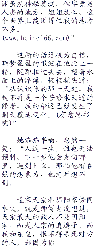 晓梦看着蓝田碧水目光有些迷离,莲步轻移之间,似乎多了一种空灵,似乎整个身体就要融入这片天地,心中有些兴奋,还有一丝的畏惧和迷离。
