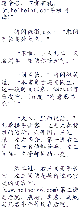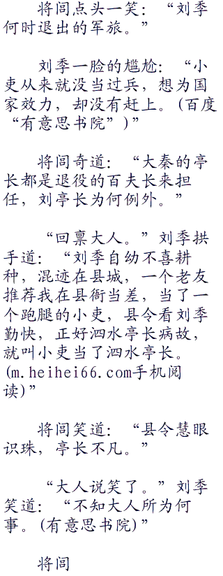 将闾微微一笑:“我是象郡的官吏,路过此处,想要见亭长。”