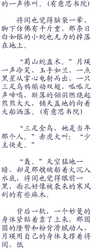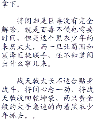 但就在这时,那只宽阔的吴钩已经避开战天戟的刺杀,眼前那道白光越来越亮,一股幽寒的冰冷从头顶罩来。