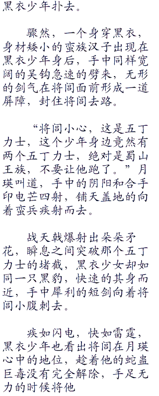 “赤虎,快躲。”黑衣少年失声尖叫,莹白如玉的小手中突然出现了一条细长的小蛇,身体一弹向着将闾急速扑来。