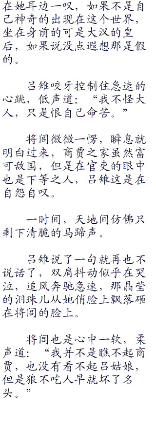 吕雉嫣然一笑,犹如鲜花怒放:“小女子果然没有猜错,公子来历非凡。”