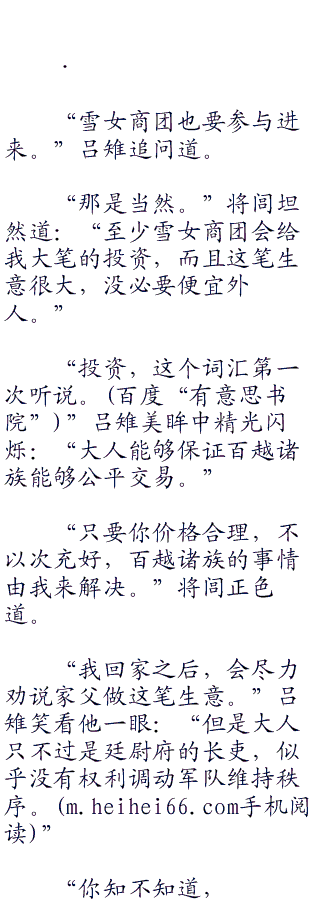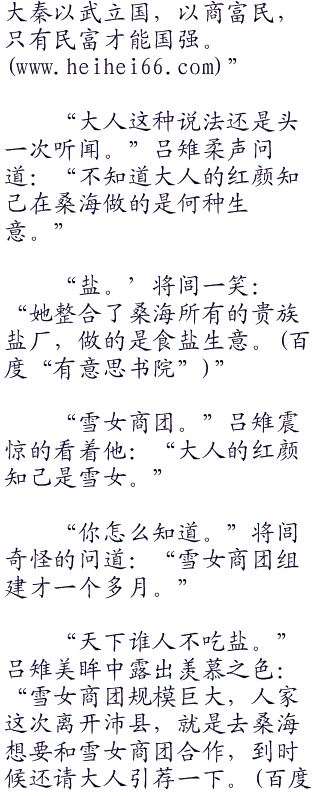 “我倒是没这个想法。”将闾摇头一笑:“我有一个红颜知己,在桑海也是做生意的。”