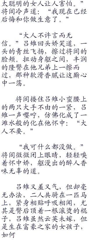“那吕姑娘恐怕就很难完璧归赵了。”将闾贼兮兮一笑,话语中充满了暧昧。