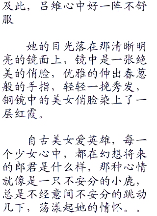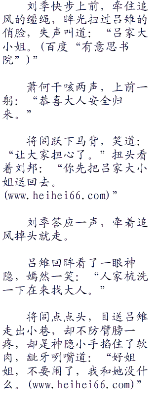 吕雉又羞又气娇嗔的瞪了他一眼,这小子说着说着就没正经,分明在说自己也是一匹马。心弦一颤,女人不就是一匹胭脂马吗?只不过是要看让谁骑而已。