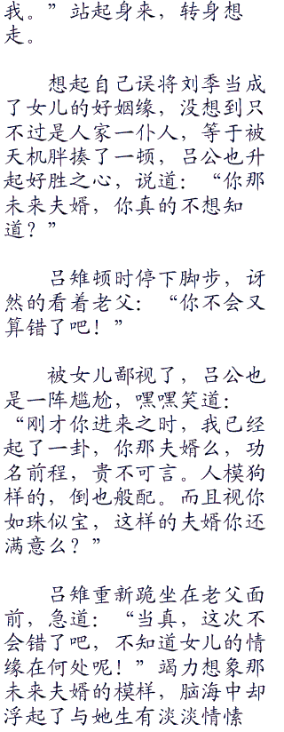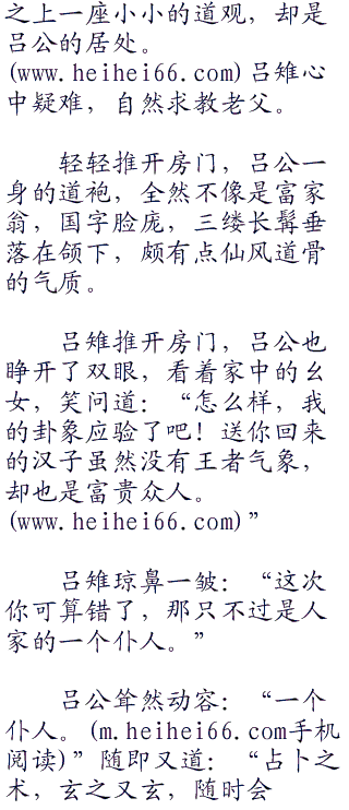 吕雉顿时一呆:“壮士,你是说刘季吗!救我的可不是他。”