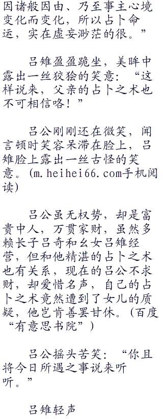 大道三千,吕家老爷吕公虽然富可敌国,却喜欢修道,只不过这老头修炼的可不是什么长生之术,而是相人之道,俗称看相算命。