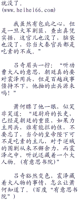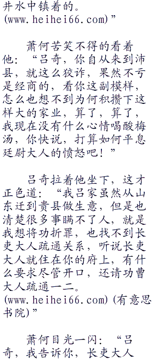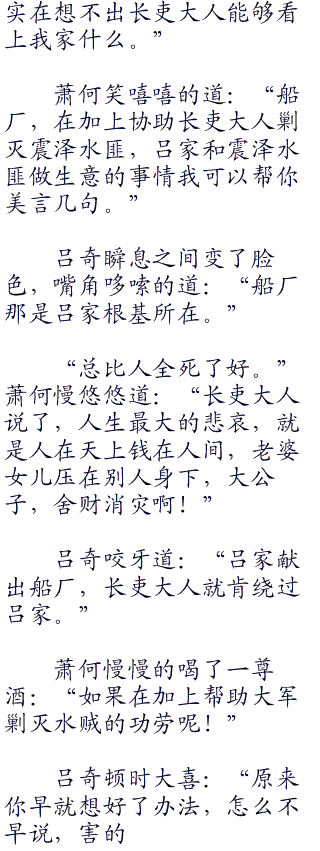 萧何微微一笑,抚须道:“大公子,当着明人何必说暗话,廷尉府的长吏在震泽遇险,官府肯定要追查到底,吕家一旦牵扯进去,就是灭族之祸。”