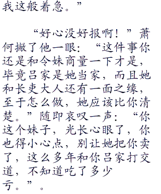 吕奇听了这话怒道:“功曹大人,你这是什么话,难道连我都信不过,竟然和我打起马虎眼,我吕家一向清白,这次震泽遇险还有在下和家妹,如果吕家和震泽有关系,水匪还能抢掠我们吗!”