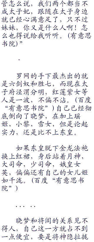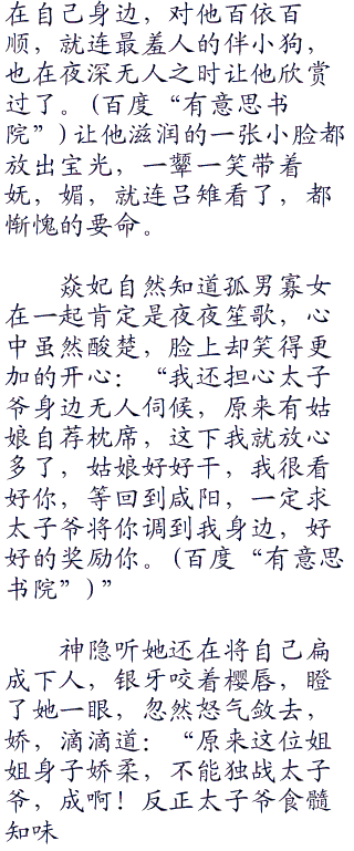 神隐轻声一笑:“扮成丫鬟,只不过是好随身伺候太子,哎,太子爷也是整天都这么忙,还天天晚上让我服侍他。”