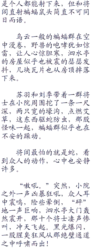 刘季瞬息之间变了脸色,颤声道:“你们听到了什么。那是什么声音。”众人心中一凛,全都侧耳细听,隐隐约约在呼啸的风中带着野兽的咆哮。声音越来越近,将闾心中升起强烈的不祥之感,几百个将士全都鸦雀无声,汗毛耸立。