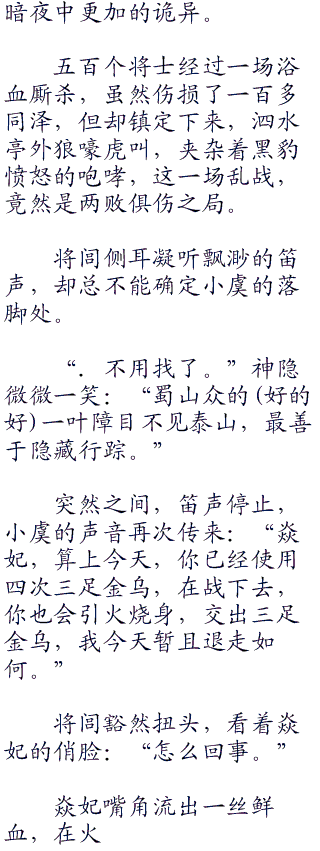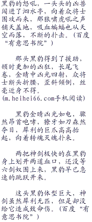 眼看着黑豹凶狂,动作快如闪电,己方死伤惨重,一声呼啸,罗网六剑奴从将士的肩膀上飞了过来,七把神剑一起向着黑豹身上招呼。
