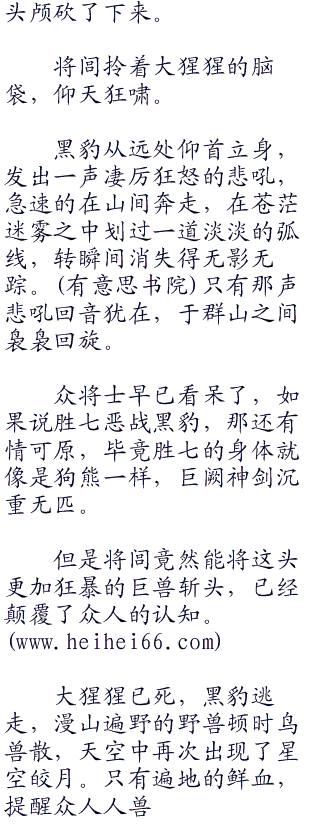 胜七来不及收回巨阙,虎吼一声,凝聚全身真气,松开青铜锁链两手全力击出。谁想到这头黑豹竟然奸猾以及,突然起身咆哮,两只巨大的爪子悍然抓向胜七。