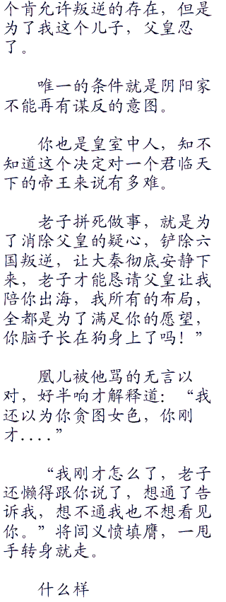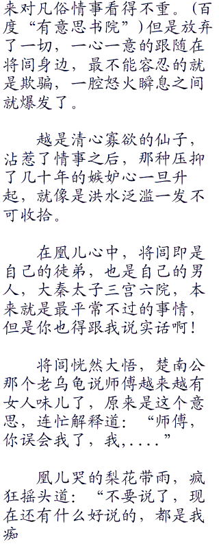 “不要过来。”凰儿恶狠狠的盯着他,俏脸上满是悲伤:“你现在还骗我。不就是舍不得那两个狐媚子,才不肯陪我去蜀国。”