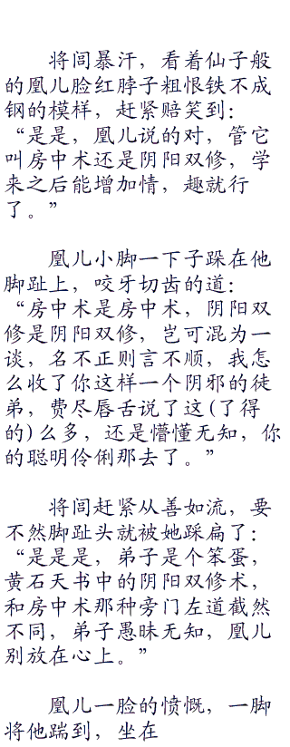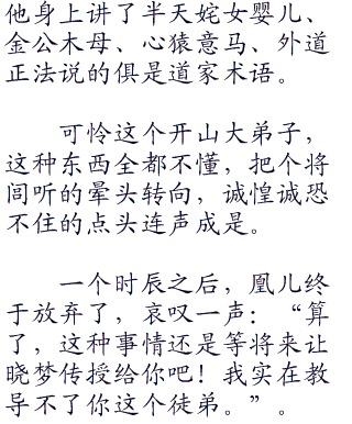 凰儿一声苦笑:“你天生就是一头犟驴,但是人真的能够掌握自己的命运吗!”