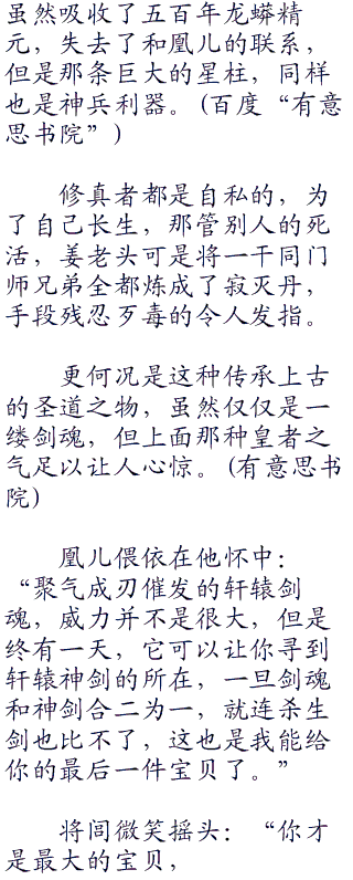 “这是轩辕剑魂。”凰儿俏脸带笑:“这东西果然和你有缘。”