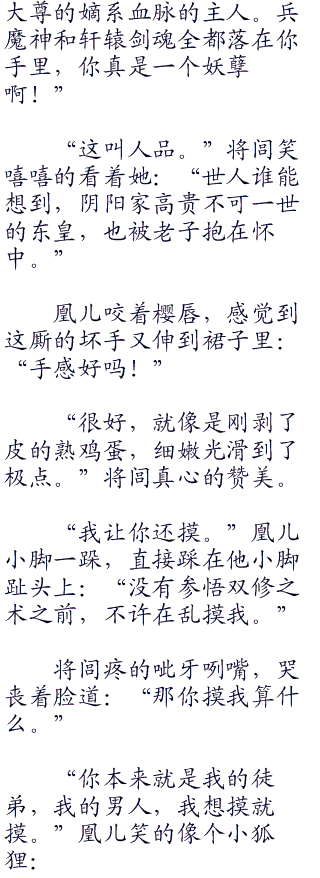 将闾诚惶诚恐:“其实,我可以传授师傅洞玄子三十六式。”