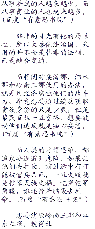 韩非呕心泣血铸就的大书,就在将闾的乾坤袋中,但是韩非的话也并不是全对,至少有对商人的严格控制,就让将闾鄙夷。