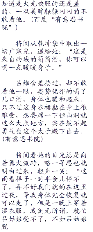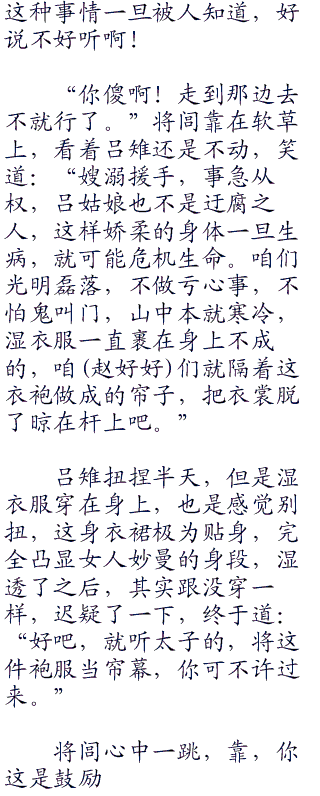 将闾联系的目光看了一眼吕雉,她的头发还滴落着水珠,滑过晶莹玉润的脸颊,又从尖尖的下颌滴落在自己的皮肤上。