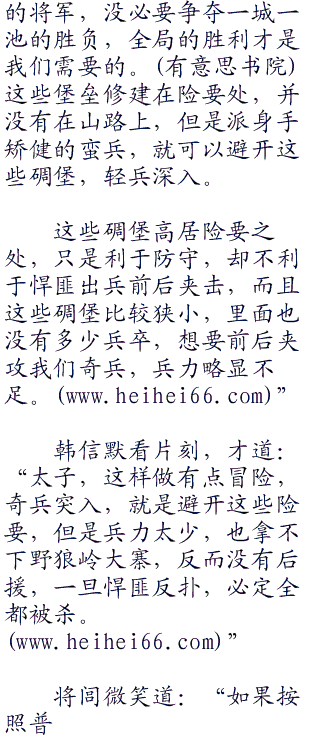 韩信也被引动了好奇心,狐疑道:“这里的地势山形,全都是从抓获的俘虏嘴中问出来的,沙盘上的地形已经十分的逼真,末将已经看了数次,实在想不出办法,太子打算怎么办。”