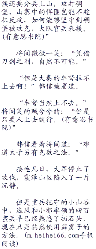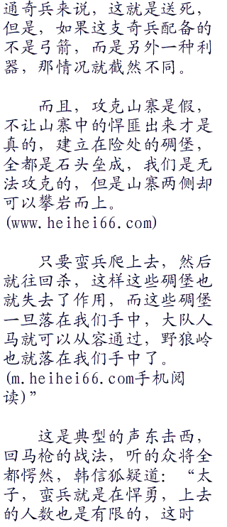 但是将闾本来就没按好心,蛮兵死伤的越多,百越才越平静,而且这群蛮兵全都是桀骜不驯之辈,只有经过血与火的锻炼,才会知道相互配合的重要性,一旦服从命令听指挥,就是最强的精兵。而战将,也不是光靠兵书就可以培养出来的,必须经过实战的考验。