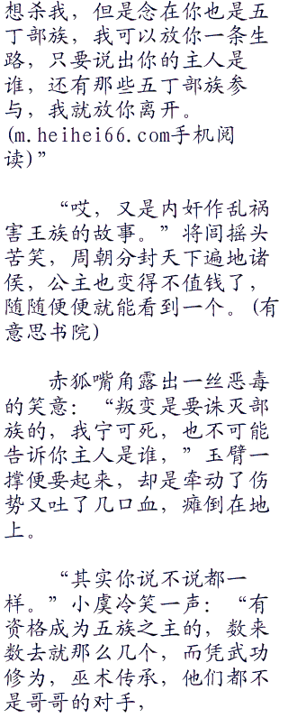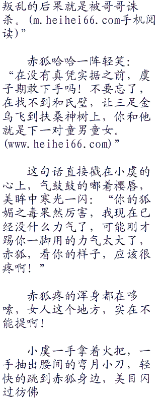 “都说赤狐狡猾,其实也挺笨的,明明知道我中了你的狐媚之毒,还急着杀我,不正是给了我机会。”小虞冷冷的看着靠在石壁上,不断揉着双,腿之间的赤狐,清冷的声音带着一丝得意。