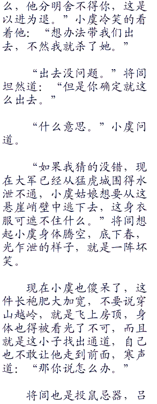 “咳咳”将闾连声的咳嗦,二女同时惊叫:“没了,什么都没了。”