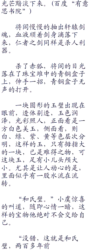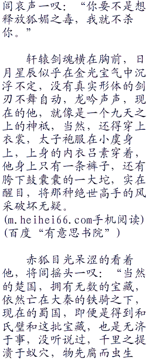 吕素顿时贴在了将闾的背后,小手一凉,将闾已经塞给了她一把青铜剑。