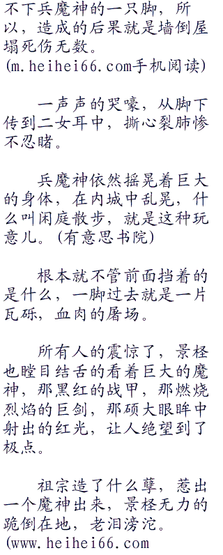 “轰”兵魔神一脚就把一座房屋踩到,里面的人连哭喊一声都来不及,就变成了肉酱。