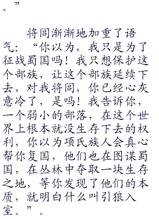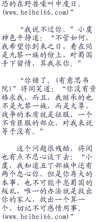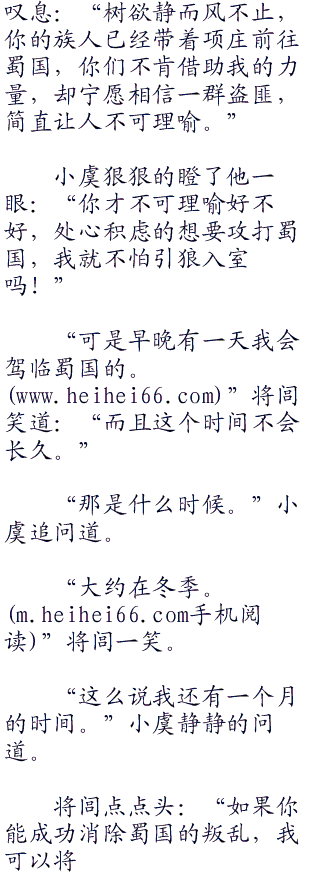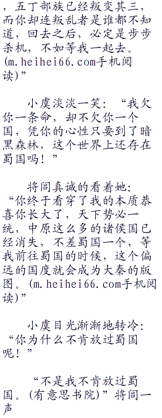 小虞冰冷的双眸中泛出一股寒光:“能够带领五丁部族叛乱的,只有几个人,留在蜀国的父王,兄长都是我的亲人,在这个为难之刻,我不能不回去。不能亲眼看到他们安全,如何能够放心。”
