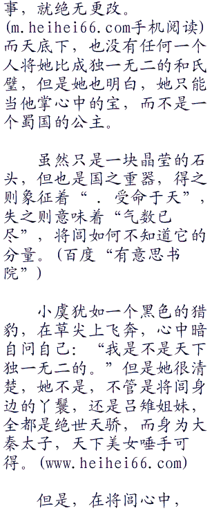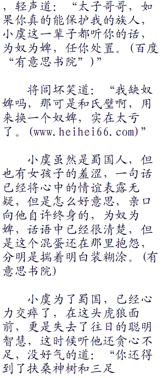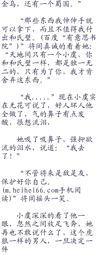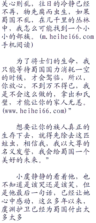 小虞沉默不语,将闾的意图很清楚,只要他扔出和氏璧,蜀国就得乱成一锅粥,但是这样做的目的,仅仅是保存她的家人,而不是蜀国。