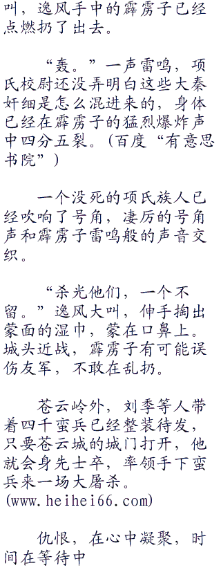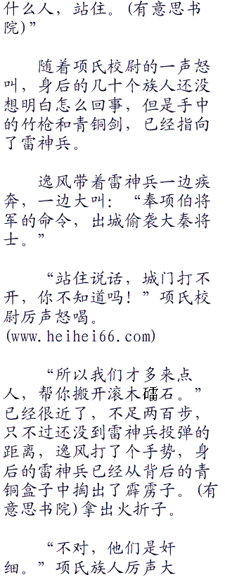 杂乱的脚步声在城头上响起,殉落的项氏族人怒喝之声此起彼伏,但是谁也没想过,这支隐藏在夜色中的军队,竟然是大秦官兵,接近几十步才看的出来,但迎接他们的就是一阵箭雨。
