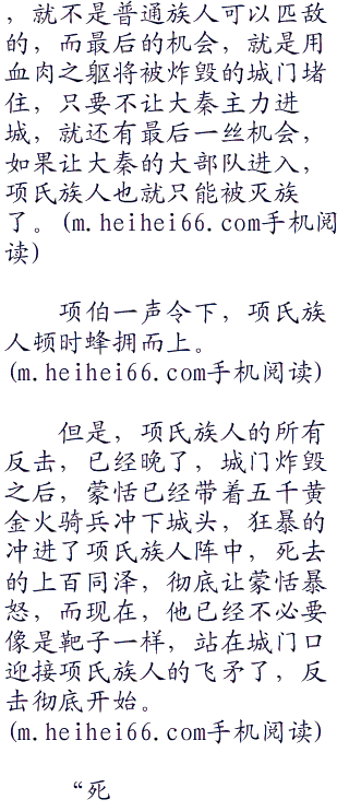 项伯两只眼珠子都瞪出来了,竭尽全力的呼喊:“大秦不会接受我们的投诚,战也是死,不战也是死。冲上去,快堵住他们,别让这该死的秦兵冲进来。