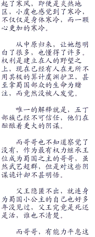 而蚕丛就是传授蜀人养蚕织帛的君王,而青色和黑色,是虞渊护卫专用的色彩,代表着无上王权,不是任何人都可以用的。