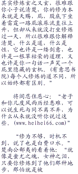 而让蜃的精魄彻底恢复,也需要赤火流金温养神识。筑基九层,就是温养神识的境界,懂吗。知不知道你现在精气神三宝充足,却不能进阶筑基九层,就是缺少天珍地宝温养神识。”