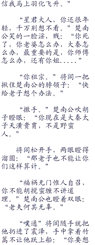 “南公啊,你抽空问问,天上缺不缺神仙你也该归位了。”将闾忍不住的诅咒他。