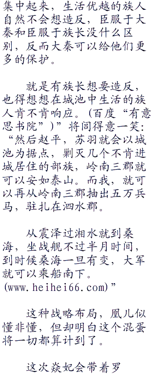 将闾拍拍她的粉臀:“师傅啊,岭南三郡的人口不过四五十万,还没泗水郡一个郡的人口多。但是王翦三十万大军,征缴了三年,都没让百越彻底臣服。大秦不怕住在城池中的百越蛮族,却怕住在山岭之上的野人。