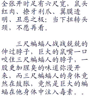 那妖人在石壁上写写画画,小虞凝神看去,却是两个蜀国文字:“快走。”接着两只鼠爪连连挥舞,似乎是想要赶小虞出去。