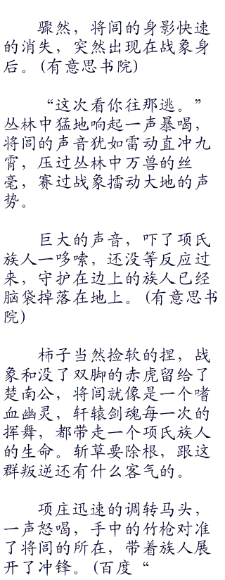 战象看似高大笨重,但实际上灵活的很,跋山涉水如履平地。而且力大无穷。将闾曾经斩杀过几头战象,但是却没有遇到过这样巨大的战象,完全是一座移动的小山。