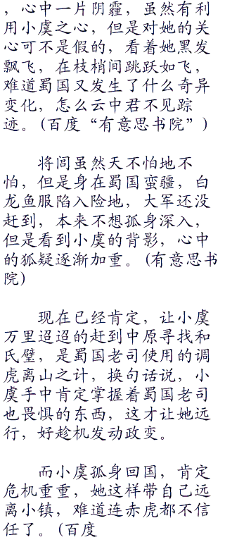 将闾根本就没打算让这些人找到小虞,但却希望自己驾临的消息传遍整个蜀国,而尾随小虞来到蜀国的云中君,就会想办法和自己通消息。